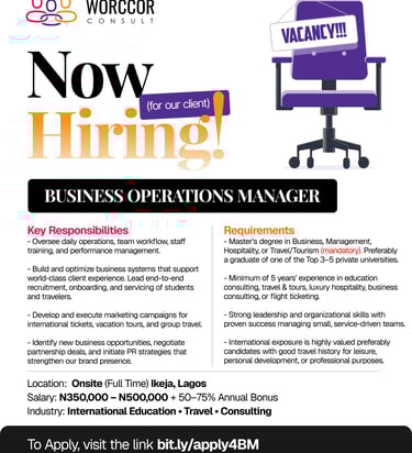 At least 5 years of hands-on experience in education or business consulting, travel, tours, luxury hospitality, or flight ticketing—with a strong record of performance and business delivery.